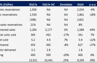 PHD 3Q17 results: Healthy growth in net contracted sales; profitability lower y-o-y as expected due to higher interest charges